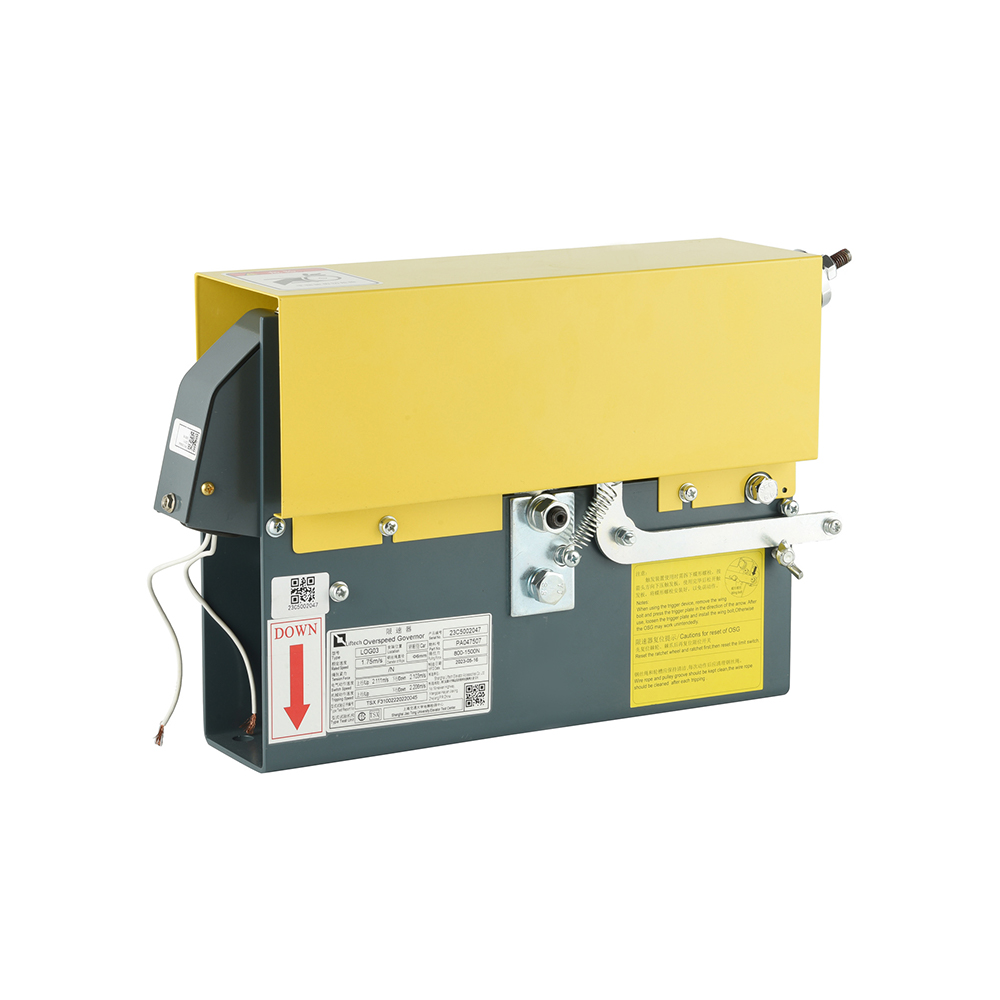 Las piezas de seguridad del ascensor del dispositivo de detección de exceso de velocidad del ascensor de la sala de máquinas LOG03 utilizan una estructura avanzada de bloque oscilante centrífugo. Cuando la velocidad de la cabina del ascensor supera el 115% de la velocidad nominal, el bloque oscilante gira hacia afuera mediante fuerza centrífuga, activando un interruptor eléctrico que desconecta el circuito de control del ascensor, desenergizando el freno y deteniendo el ascensor.