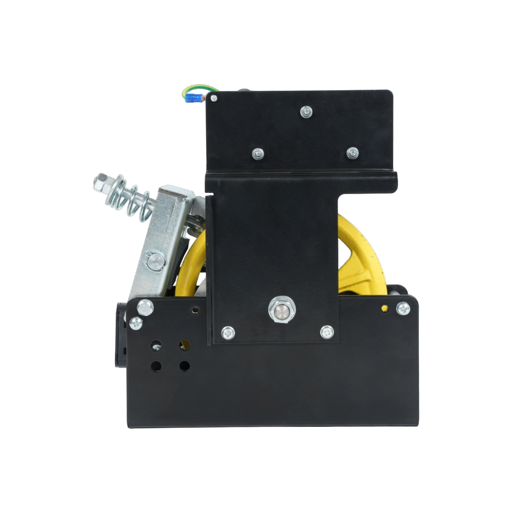 La tensión de trabajo del limitador de exceso de velocidad del elevador de villa LOG07 es de 220 VAC o 24 V CC capaz de cumplir con los requisitos de compatibilidad de diferentes sistemas eléctricos. Este limitador de velocidad adopta una estructura de bloque centrífugo avanzada. Cuando la velocidad del ascensor excede un cierto valor de la velocidad nominal, el bloque es arrojado hacia afuera debido a la fuerza centrífuga, activando el interruptor de contacto eléctrico, cortando el circuito de seguridad y deteniendo la máquina de tracción, evitando así que el ascensor acelere demasiado. El regulador de velocidad tiene las ventajas de una estructura compacta, un funcionamiento confiable y un fácil mantenimiento. Su diseño cumple con las normas nacionales pertinentes y garantiza una protección oportuna y eficaz cuando el ascensor acelera demasiado o el dispositivo de suspensión se rompe.
