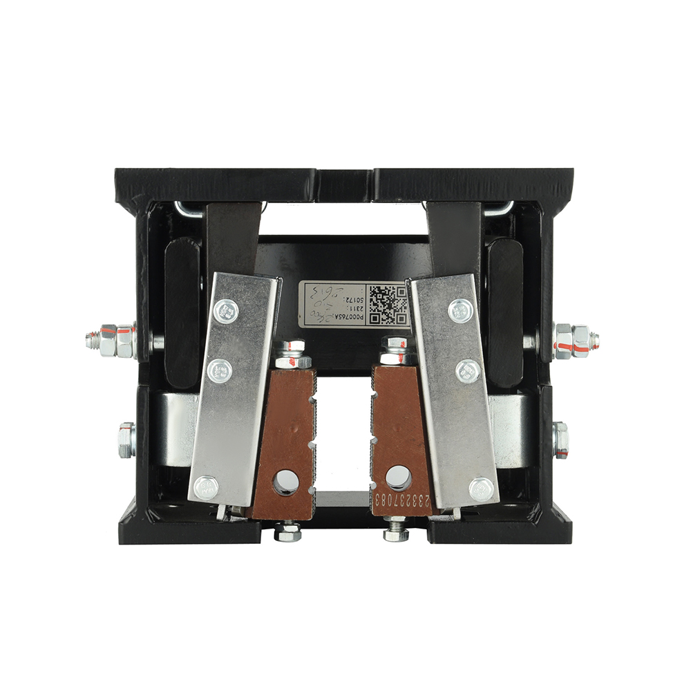 La abrazadera de seguridad de elevación del dispositivo de engranaje de seguridad progresivo del ascensor LSG03 utiliza una estructura de doble cuña con un resorte de lámina en forma de U como elemento de resorte. En caso de exceso de velocidad o mal funcionamiento del ascensor, la fricción entre las cuñas y los carriles guía proporciona un frenado suave, deteniendo eficazmente la cabina del ascensor.
