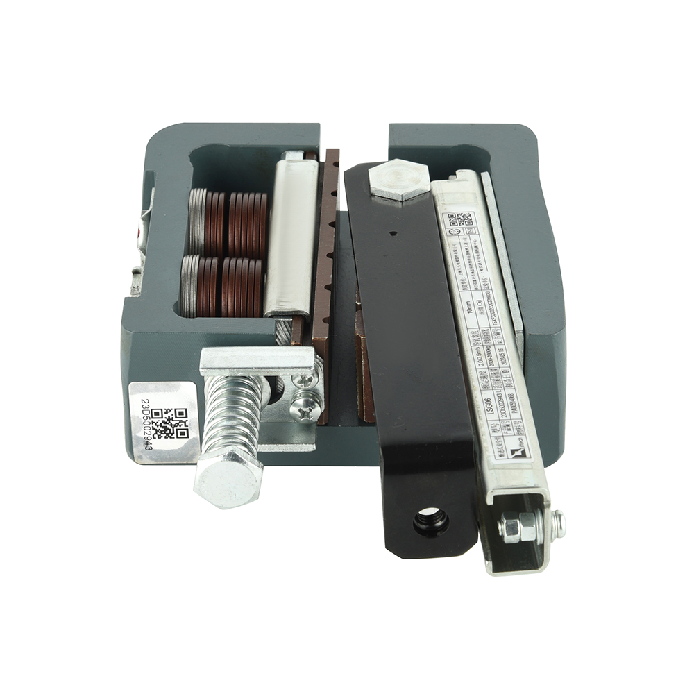 El LSG06 cuenta con una placa guía integrada, un diseño sencillo que facilita la instalación y el mantenimiento. El ángulo calculado con precisión de la placa guía garantiza un contacto suave y rápido de la cuña móvil con el carril guía en caso de exceso de velocidad del ascensor, lo que da como resultado un frenado eficiente.
