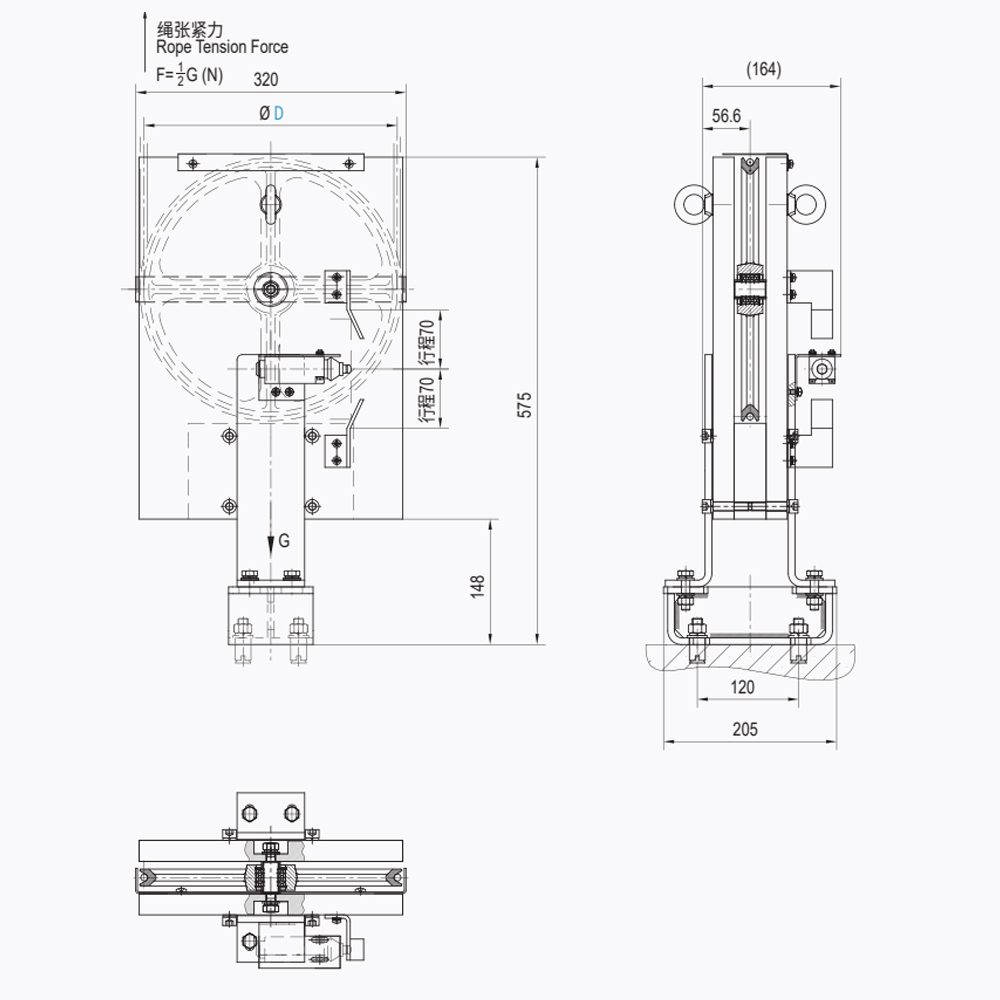 Dispositivo tensor de ascensor LTD03 El componente de seguridad del ascensor es un dispositivo tensor de ascensor vertical con un amplio rango ajustable. Su característica más importante es que puede adaptarse a la contracción o extensión del cable metálico en condiciones climáticas complejas.