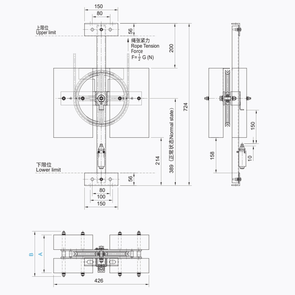LTD06 Dispositivo tensor de elevación Las piezas de seguridad del ascensor ajustan la tensión del cable de tracción, evitando eficazmente la holgura del cable causada por la deformación plástica, garantizando así un funcionamiento suave del ascensor en diversas condiciones de funcionamiento. Su diseño estructural racional es adecuado para una variedad de configuraciones de ascensores y puede adaptarse a las especificaciones de velocidad y las condiciones de funcionamiento reales del dispositivo de alisado del techo del automóvil para garantizar un efecto de tensión óptimo.